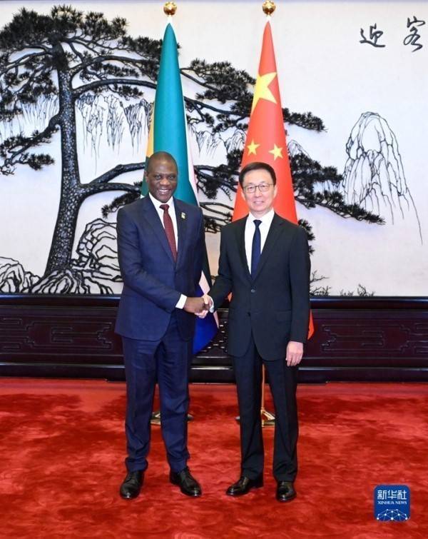 2023年11月3日,中国国家副主席韩正在北京会见南非副总统马沙蒂莱,并共同主持召开中南国家双边委员会第八次全体会议。图片来源:新华社